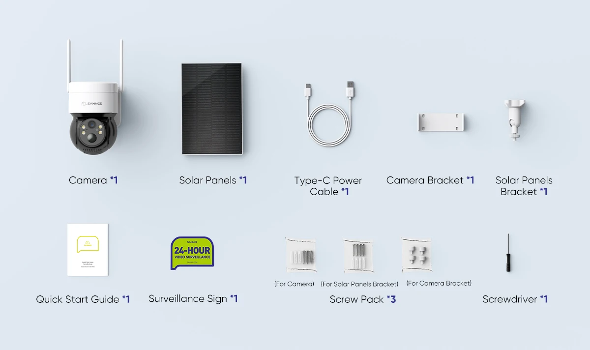 Details: Sannce 4MP 2.4G WiFi Video Security Surveillance Camera Two Way Audio 18650 Rechargeable Battery Solar Panel Security Protection
